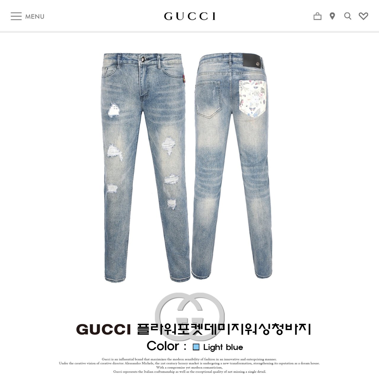 [구찌] [재고정리] 플라워포켓 데미지워싱청바지